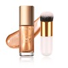 Body Shimmer Oil Shimmer Face Body Oil Luminizer Liquid Highlighter Makeup Moisturizing Smooth Body Glow Illuminator for All Skin Types with Makeup Brush - 03 Bronze Gold