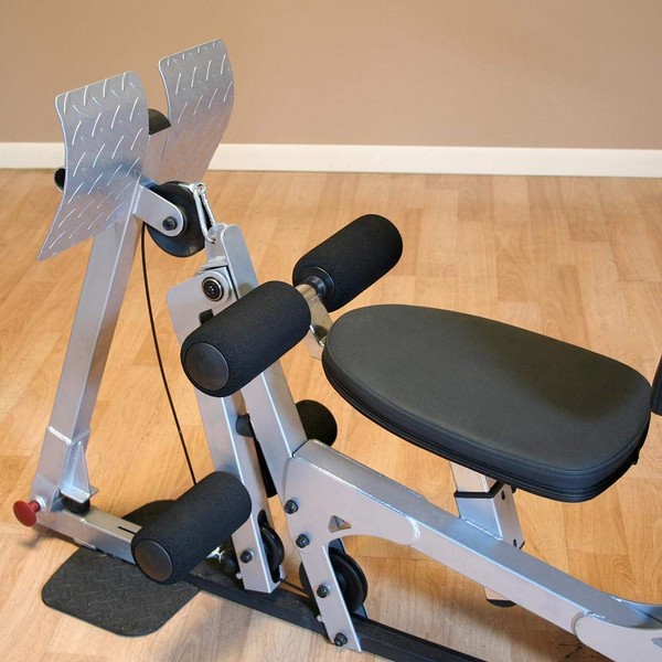 BSGLPX Leg Press Attachment for the BSG10X. The leg press is a compound exercise, working out 3 muscle groups, the quadriceps, hamstrings, and glutes. Unlike most leg press attachments, the BSG10X attachment does not require a separate station, but rather attaches to the front of the leg developer with an extra pulley. For use with the BSG10X Home Gym only.