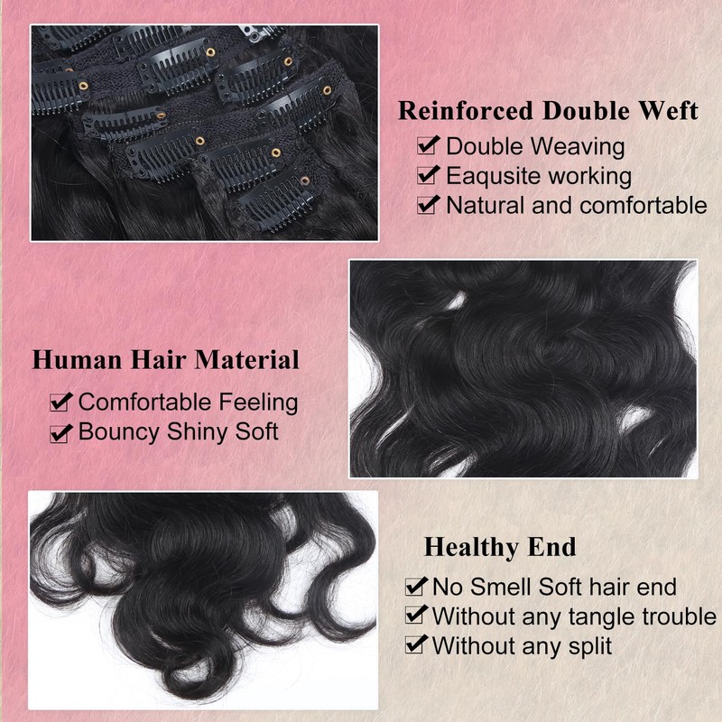 - 【Advantages of human hair clip-in extensions】: easy to apply, beginner friendly and time-saving. No glue required. Double purely hand-stitched wefts ensure more safety.