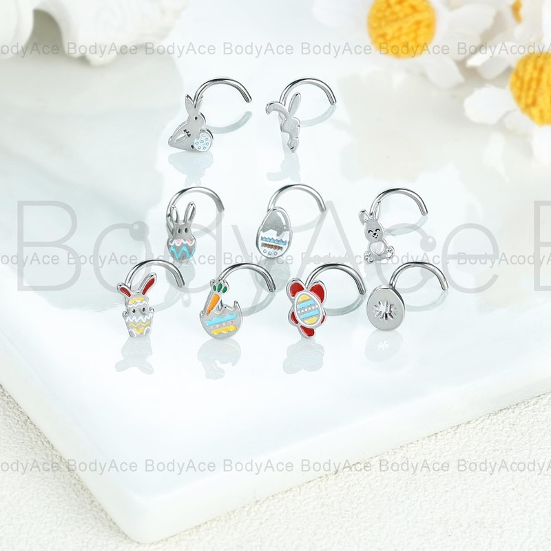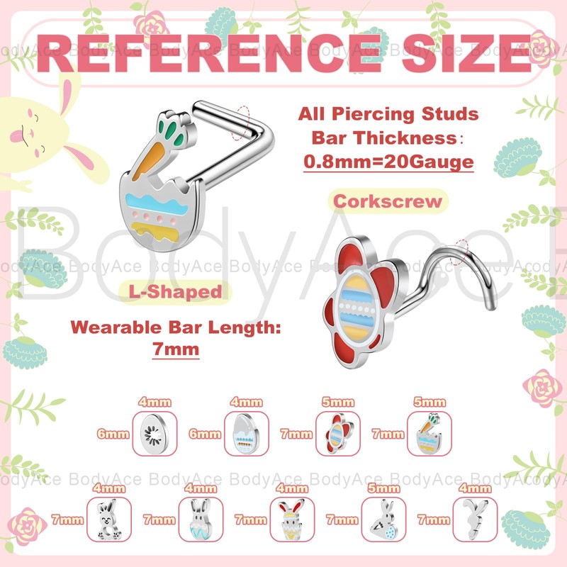 - SPECIAL EASTER DESIGN: The nose stud is meticulously designed by the BodyAce team specifically for Easter. The nose piercing jewellery incorporate the key Easter elements like bunny, eggs and carrots. With these cute and dainty nose piercing kit, your Easter look will be more distinctive and attention-grabbing.
