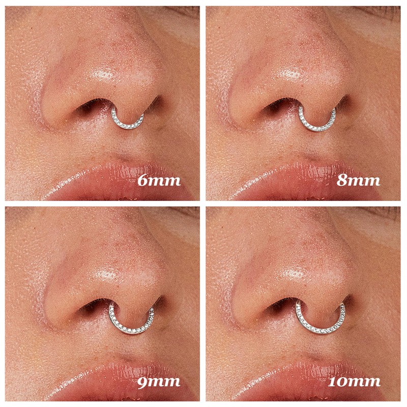 - Hinge septum ring: gauge size: 16G (1.2 mm); inner diameter: 7 mm (0.28 inches); colour: silver; material: genuine 316L stainless steel; one order contains 1 x CZ hinge segment ring, available in a variety of colours: gold/silver/black/rose gold; please refer to our size chart to choose the right size; do not worry, if the size does not fit, we are for there is when you Have questions about the nose ring