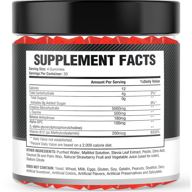 - πππππππ & ππππππ- This Creatine Monohydrate Gummies supplement is a delicious, Pectin-Based, Sugar-Free, Vegan-Friendly, non-GMO, Gluten-Free, and plant-powered option, providing a natural and sustainable energy source. Each 120-gummy bottle is manufactured in line with leading quality and safety standardsβNO GLUCOSE SYRUP, NO CONCENTRATES. As natural as it gets.