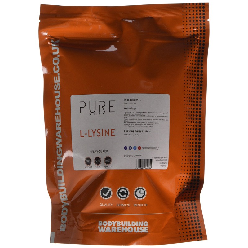 Bodybuilding Warehouse, Pure L-Lysine Powder -Unflavoured-500g