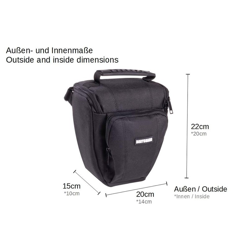 - Size: inner dimensions: 14 x 10 x 20 cm camera bag for DSLR camera set consisting of body and lens up to total length 20 cm