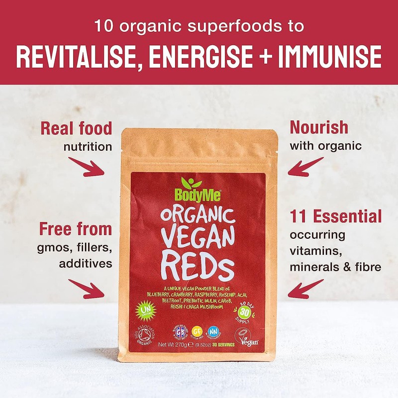 - ✅ IMMUNISE - BodyMe organic vegan reds powder contains vitamins and minerals that contribute to normal immune function to help you stay protected and fight off nasties.