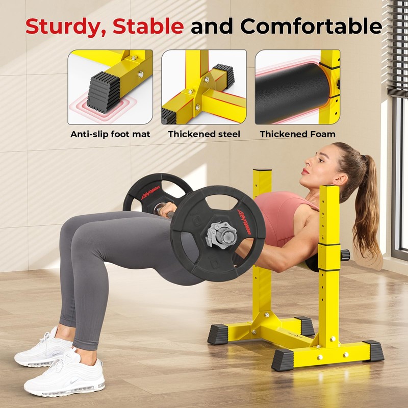 - 【Durable, Stable & Non-slip】Made of durable powder-coated carbon steel, The bodyrhythm split squat stand Max supports up to 500 lbs and stays solid on all surfaces. The 4 rubber bases can effectively prevent slipping and protect your floor.