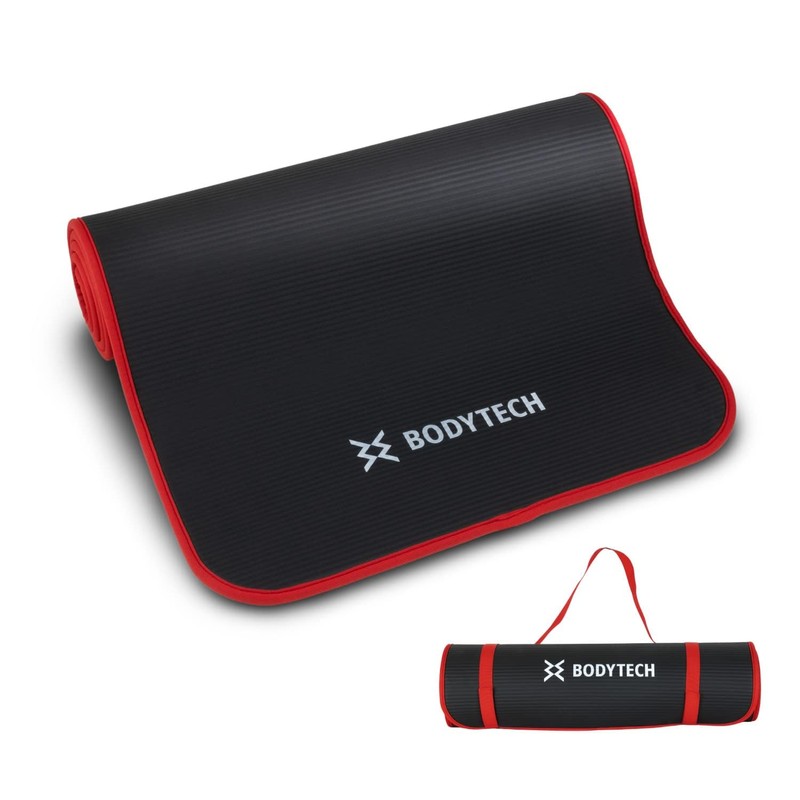 BODYTECH Exercise yoga mat with edge protection and extra wide 27.6 inches 1/2 inch thick Black/Red Color