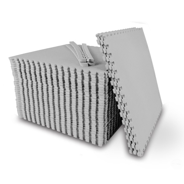 BODYTECH Puzzle Exercise Mat Interlocking Foam and Tile Mats for Home Gym. Floor Padding for Small Child. Gray Color 18 x 18 x ½ Thick 32 Sheet 81 SQFT,Grey