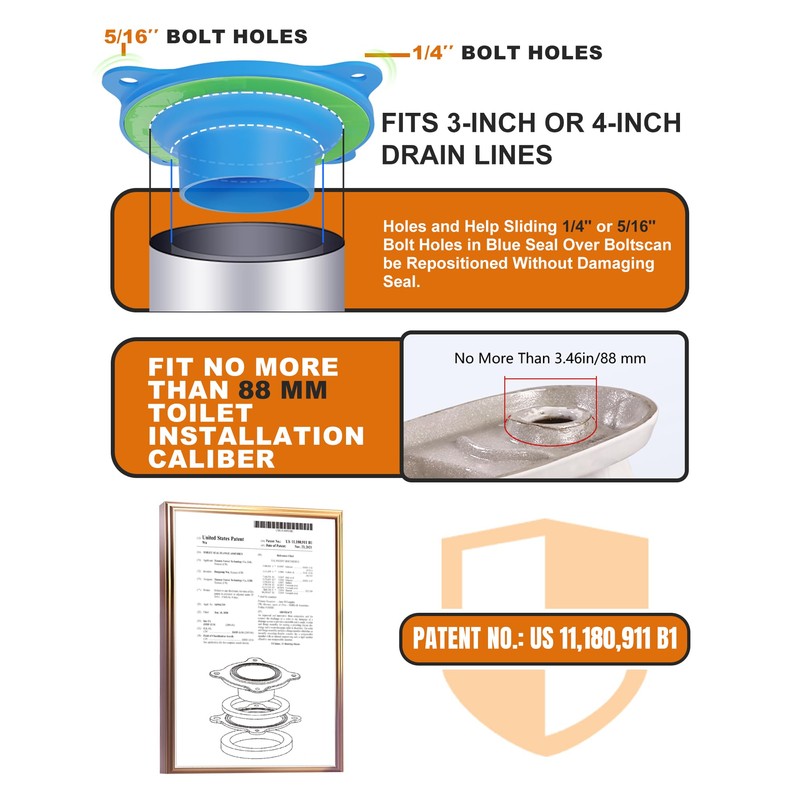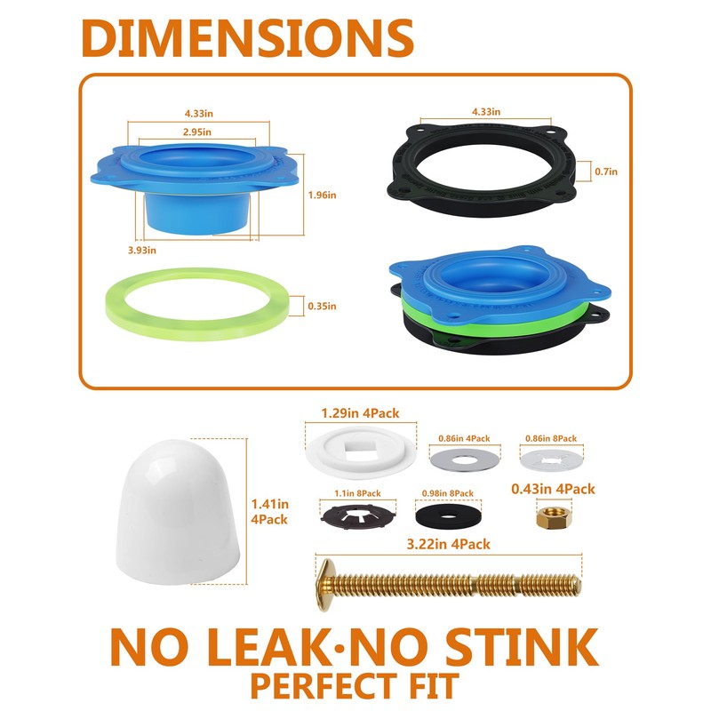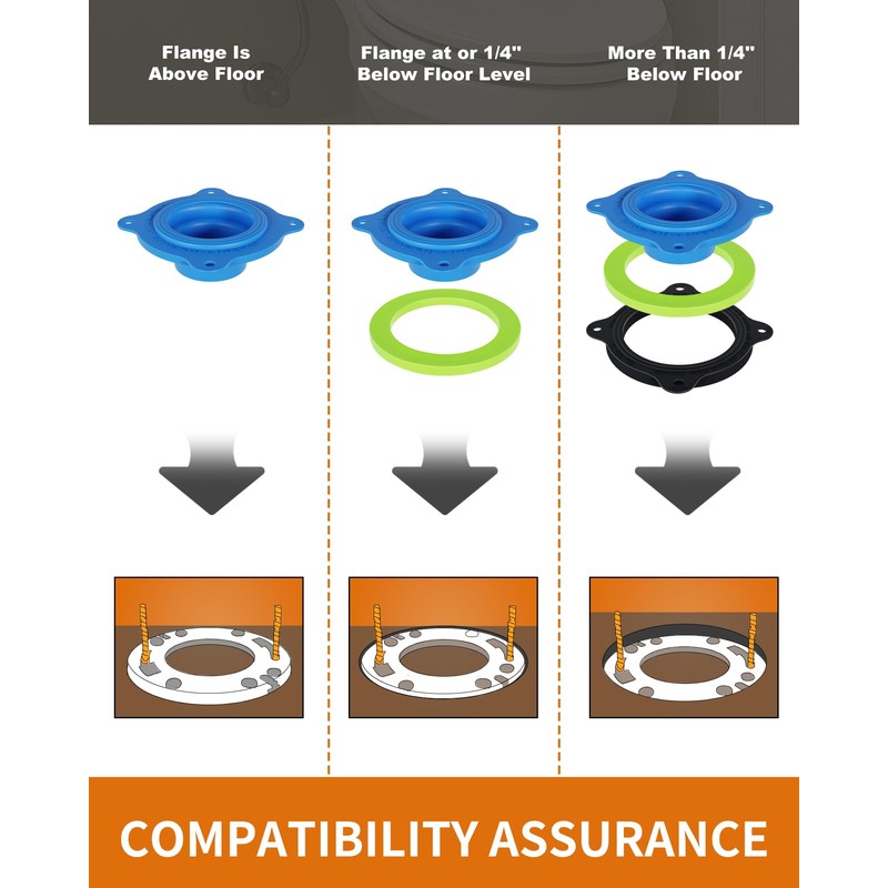 - Adaptable for Different Flange Heights: Features a modular seal design with multiple spacers, supporting installations where the flange is above, level with, or up to 1/4" below the finished floor. Ensures a perfect toilet seal regardless of height differences and simplifies floor repair projects