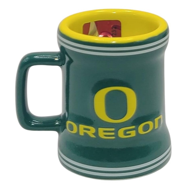 Boelter Brands Collegiate Shot Glass shaped like a Mini Mug, Sculpted Raised Logo, 2oz (Oregon Ducks)