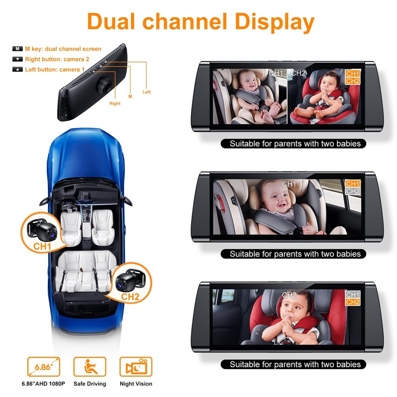 - car baby camera has night vision to provide you with a clear view in low light situations without turning on the lights or disturbing your baby, providing a clear picture no matter day or night, helping you eliminate insecurities and worries.