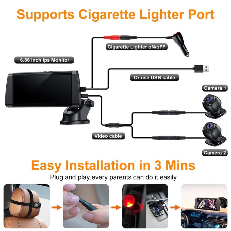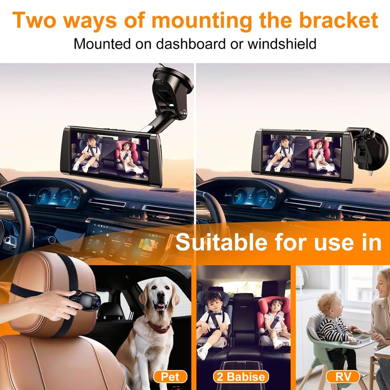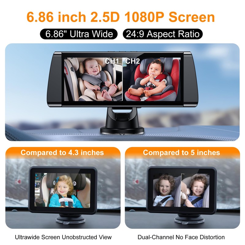 BOEYOS Baby Car Camera, Dual Channel 6.86 inch Display with 2 IR Night Vision Camera, Night Vision, Wide Clear View, Easily Observe The Baby's Move, Safe Driving for New Parents (Purple)