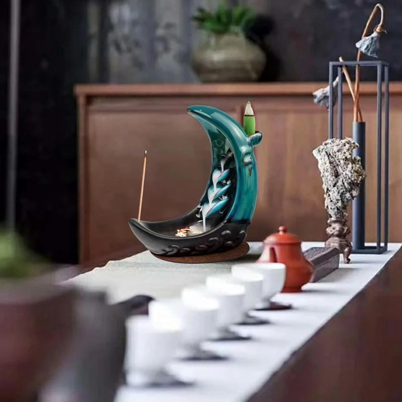 - Secret and relaxation: the smoke flows down like a waterfall and the incense burner is enveloped by smoke, creating a mysterious atmosphere. A very good ornament for decorating the house. Light reflux cones help relieve anxiety and increase efficiency at work. Helps to relax and concentrate, refresh and relax.