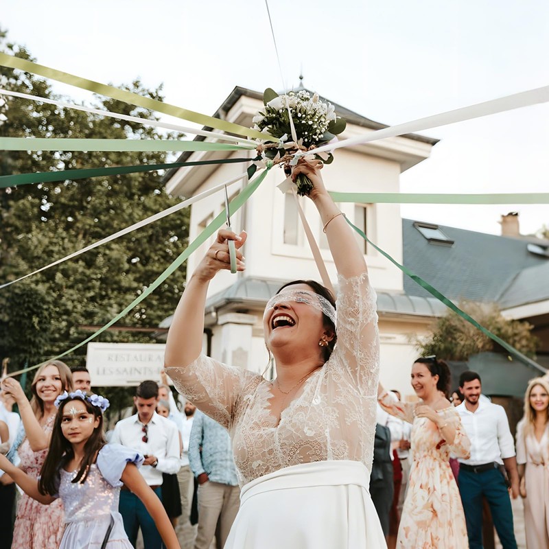 - INTERESTING WEDDING GAMES The ribbon game is an alternative to the traditional bridal bouquet throw. The bride cuts the ribbons attached to the wooden ring one by one, whoever remains as the last person receives the bridal bouquet.