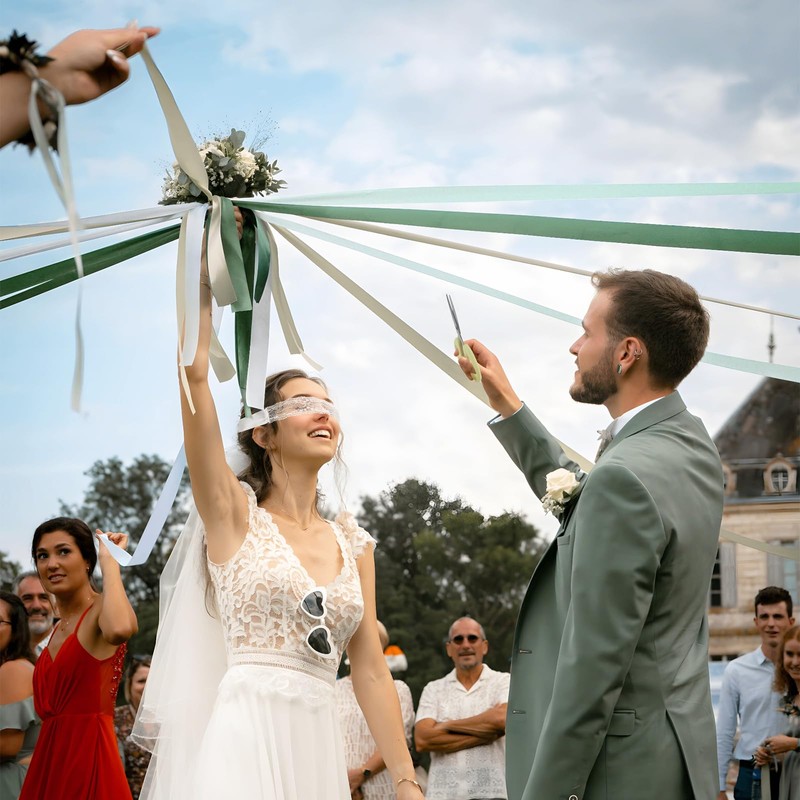 - INTERESTING WEDDING GAMES The ribbon game is an alternative to the traditional bridal bouquet throw. The bride cuts the ribbons attached to the wooden ring one by one, whoever remains as the last person receives the bridal bouquet.