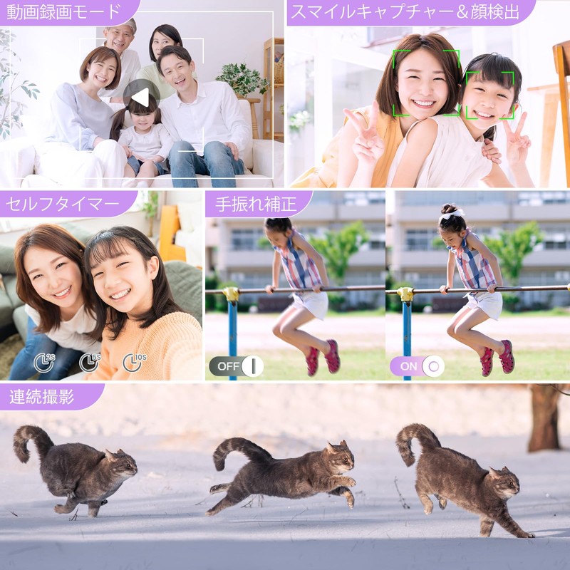 - 【Multi-functional Camera & Easy to Use】Digital kids camcorder has multifunctional, 16x zoom, pause function, anti-shake, time lapse, slow motion, continuous shooting, motion detection, face detection, self timer, anti-shake, smile capture, etc. This little camera will meet all your needs and is very easy to use and control
