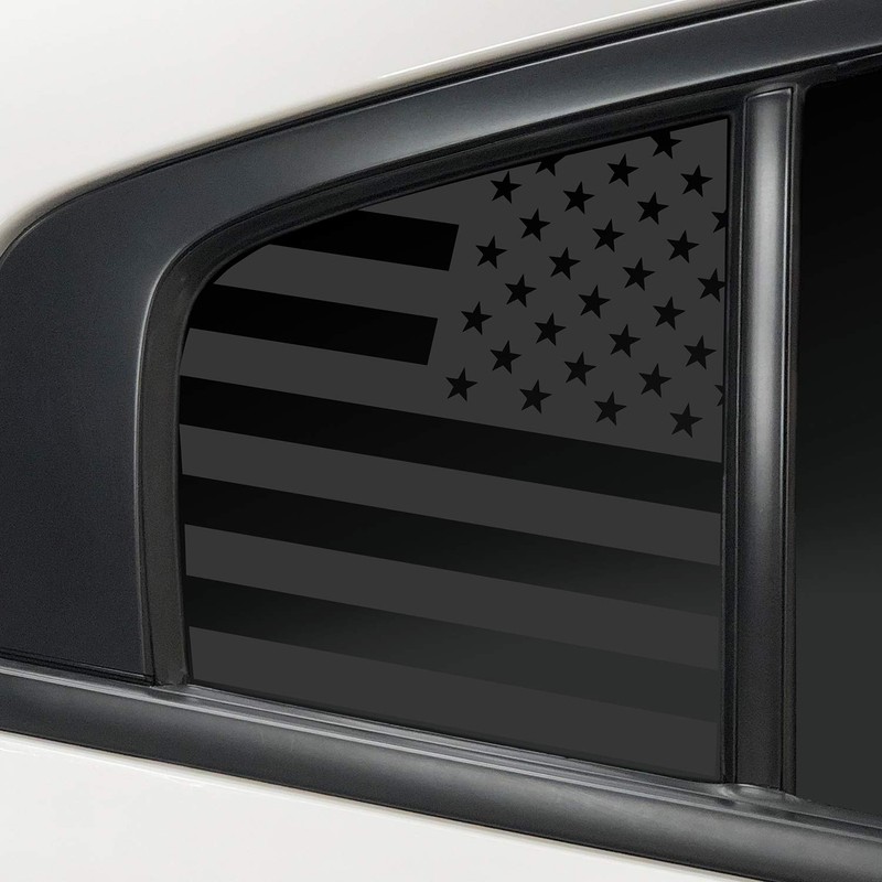 Bogar Tech Designs - PRECUT Quarter Window American Flag Vinyl Decal Compatible with Dodge Charger 2011-2023, Matte Black