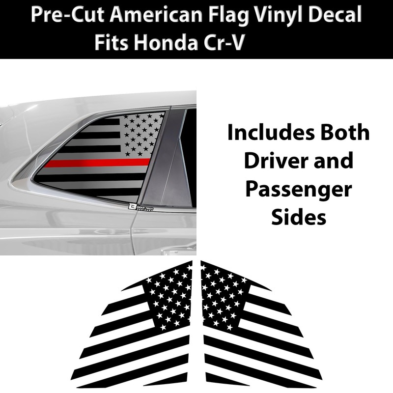 BOGAR TECH DESIGNS Precut Quarter Window American Flag Vinyl Decal Sticker Compatible with Honda CR-V 2023-2025, Thin Red Line