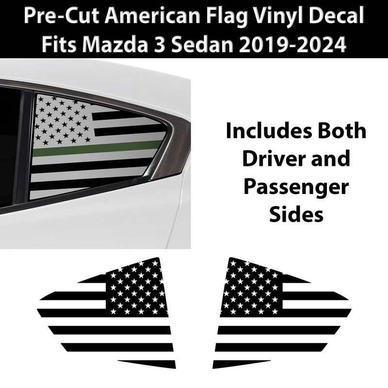 BOGAR TECH DESIGNS Precut Quarter Window American Flag Vinyl Decal Sticker Compatible with Mazda 3 Sedan 2019-2024, Green Line