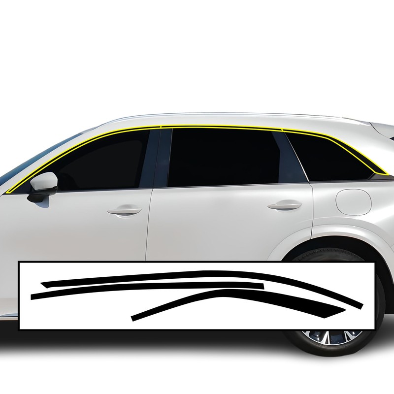 BOGAR TECH DESIGNS Side Window Trim Chrome Delete Overlay Compatible with Mazda CX-90 2024-2025, Gloss Black