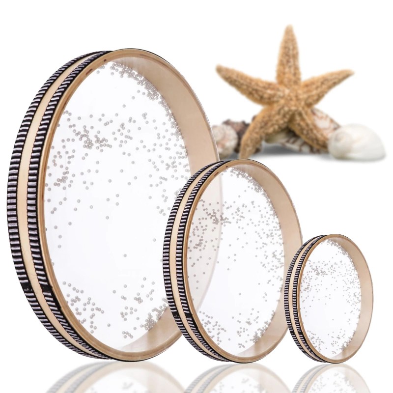 Ocean sound pack includes 3 drums: 1 x 12 inch diameter drum, 1 x 8 inch diameter drum, 1 x 4 inch diameter drum. Ocean drums are designed to enrich your sound healing practice and elevate your meditation session