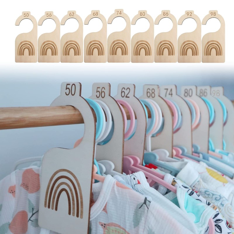 - Wooden baby wardrobe dividers: you will receive 9 baby size dividers for baby clothes in sizes 50, 56, 62, 68, 74, 80, 86, 92 and 98. Organise your baby's clothes so that they are clearly organised.