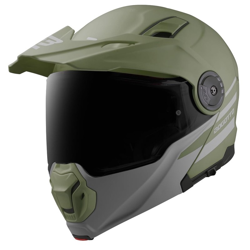 Bogotto FG-102 Duo Fibreglass Flip-Up Helmet, Matte Green, M