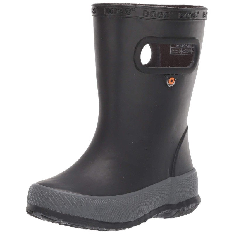 BOGS Kids Skipper Waterproof Rain Boot, Solid Black, 4 Toddler