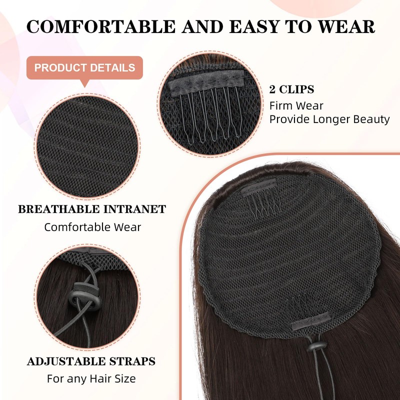 Looking to transform your look in minutes? Our 26-inch drawstring ponytail is your new go-to accessory! Crafted from premium synthetic fibers that feel soft and natural, it seamlessly blends with your hair for a flawless finish.