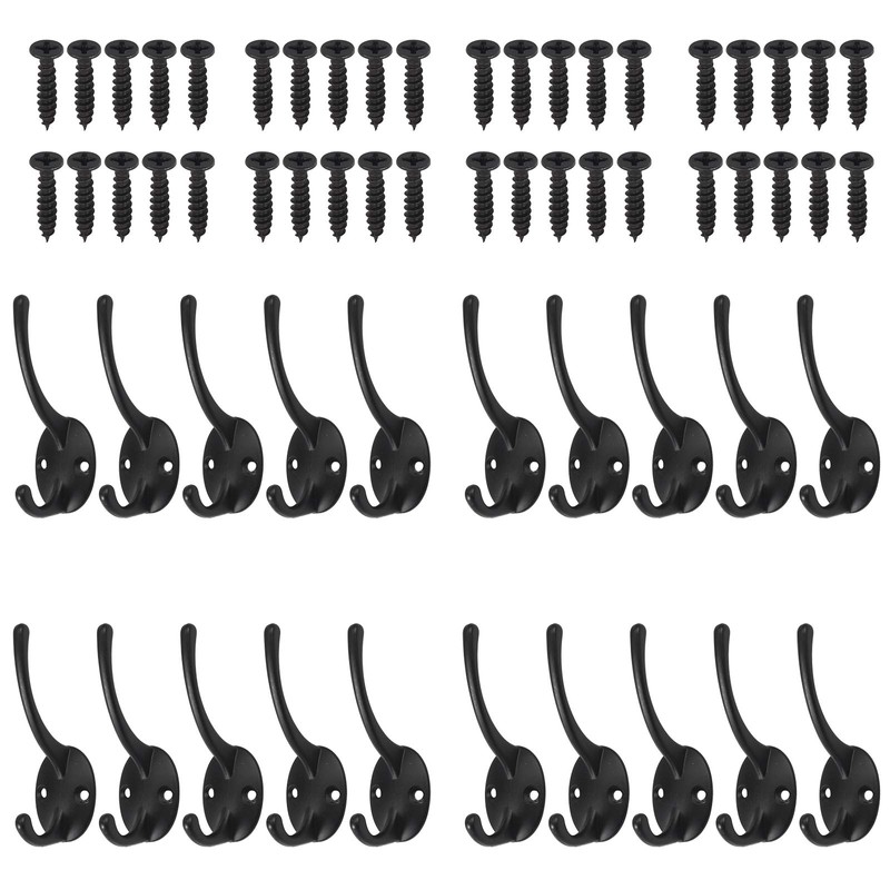Bohaner 20Pcs Double Coat Hook Classic Antique Industrial Style Vintage Cast Iron Hanger Wall Hooks Clothes Hat Hooks Robe Hooks Wall Mounted Hook