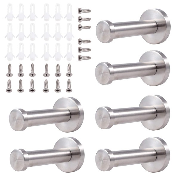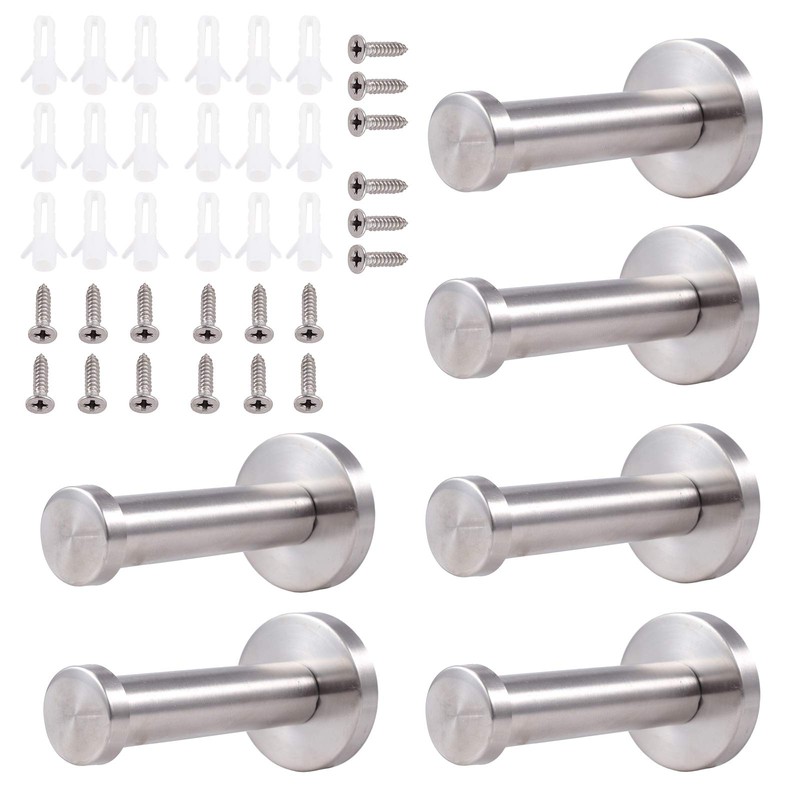 Bohaner Towel Robe Coat Hook Holder Hanger Hooks Stainless Steel Bathroom Accessory 6Pcs