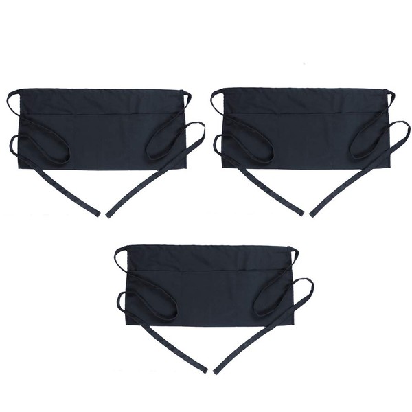BOHARERS Waist Apron with 3 Pockets 3 Pack - Black Waitress Server Short Apron