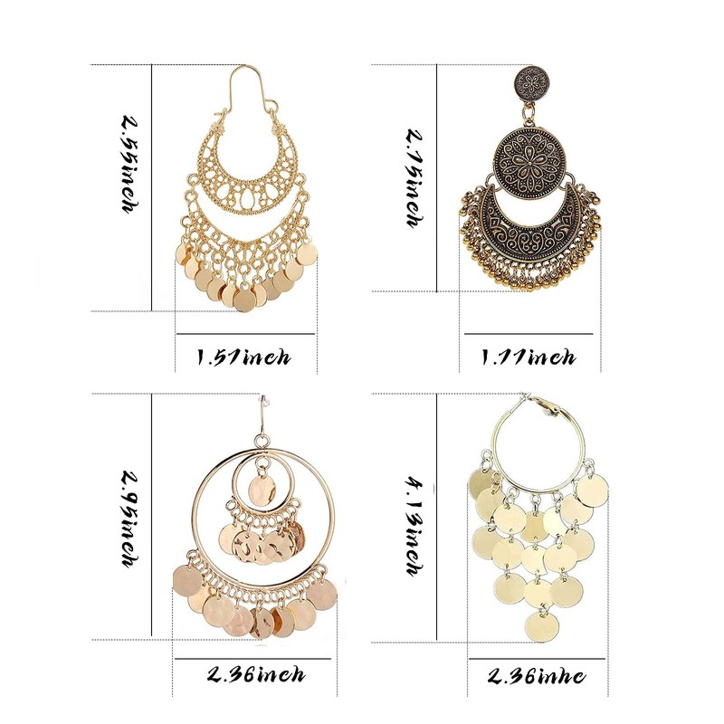 Bohemian Chandelier Earrings for Women Indian Gypsy Coin Hook Dangle Ear Jewelry (E-4pcs)