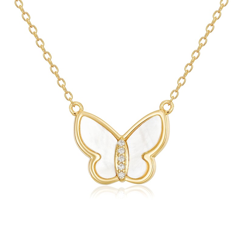 Bohemian Elegance: Women's Gold-Plated Shell Pearl Butterfly Necklace - Luxurious and Exquisite Jewelry, Sterling Silver, Turquoise