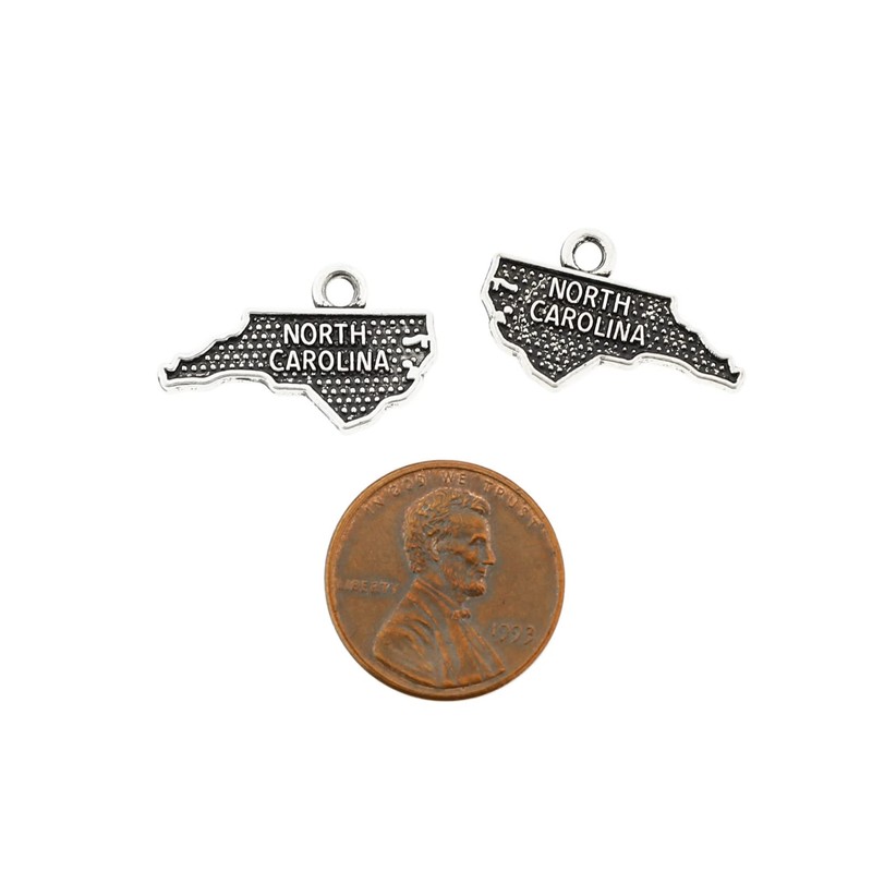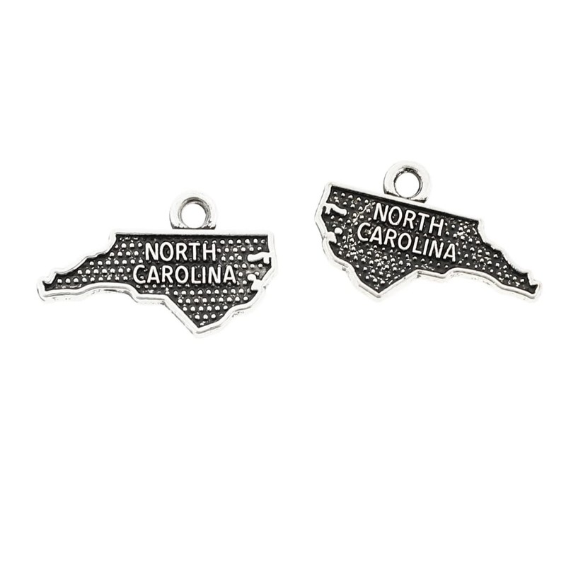 Bohemian Findings 4 North Carolina State Antique Silver Tone Charms 2 Sided - SC5196