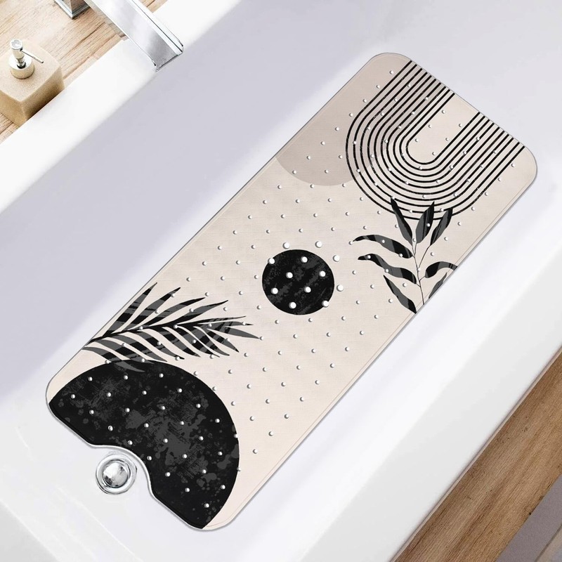 Boho Bathtub Mat Non Slip, Adults Baby Bath Mat for Tub Machine Washable, Long Bath Tub and Shower Mats with Drain Holes & Suction Cups 15.8"x39.5", White