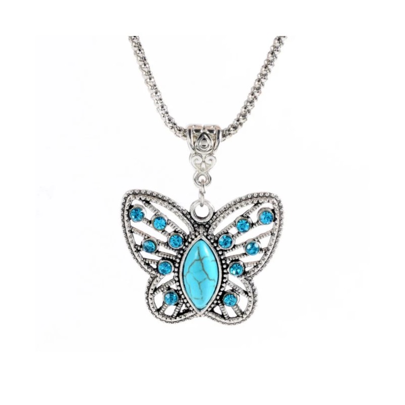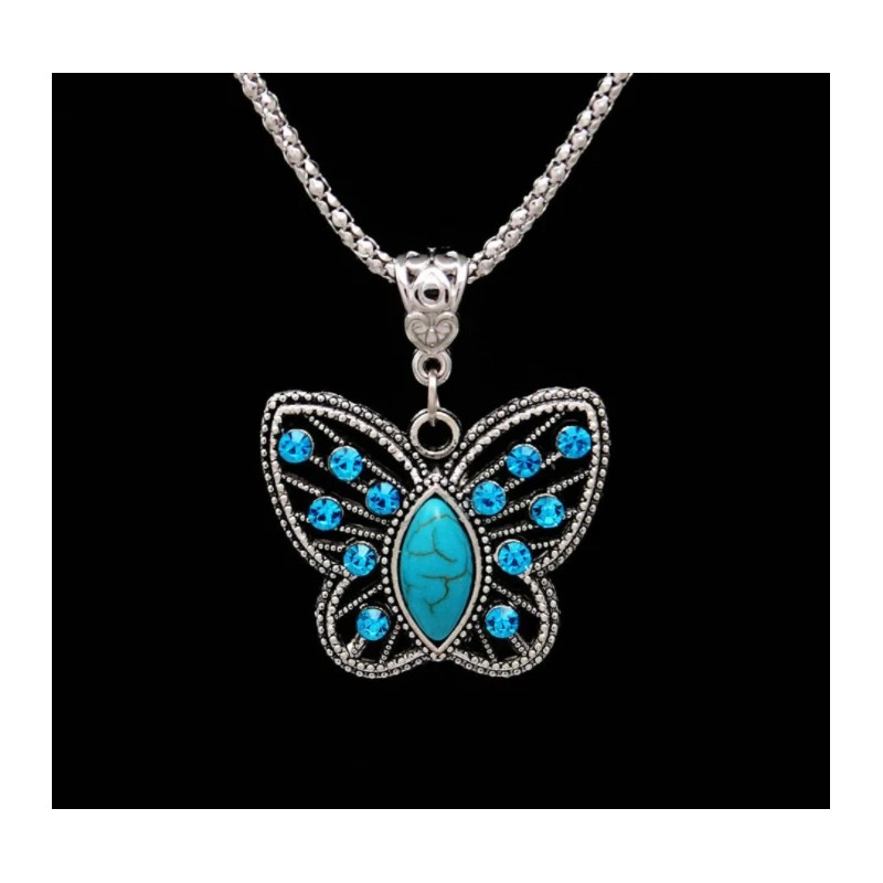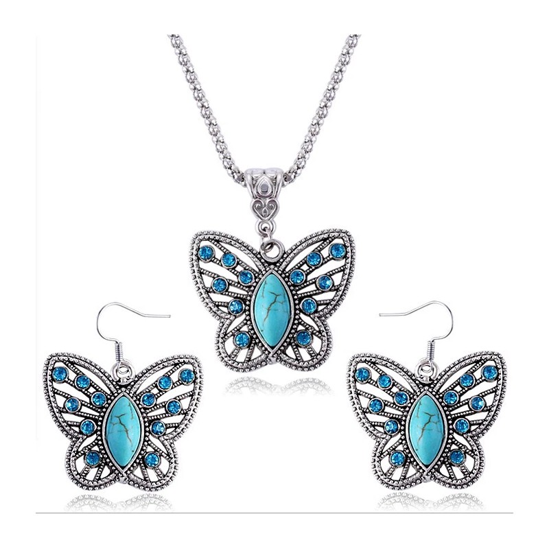 Boho Butterfly Necklace and Earring Set - Turquoise, Teal