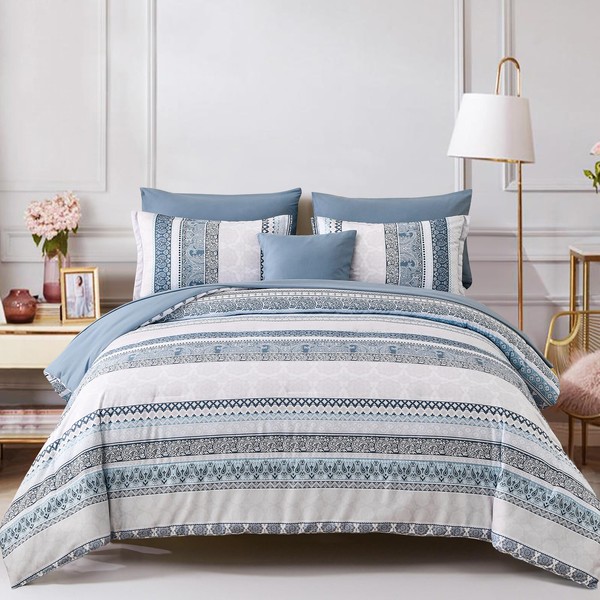 Boho Comforter Set King Size Light Blue Comforter Set 8 Piece Bed in a Bag Striped Paisley Bedding Sets