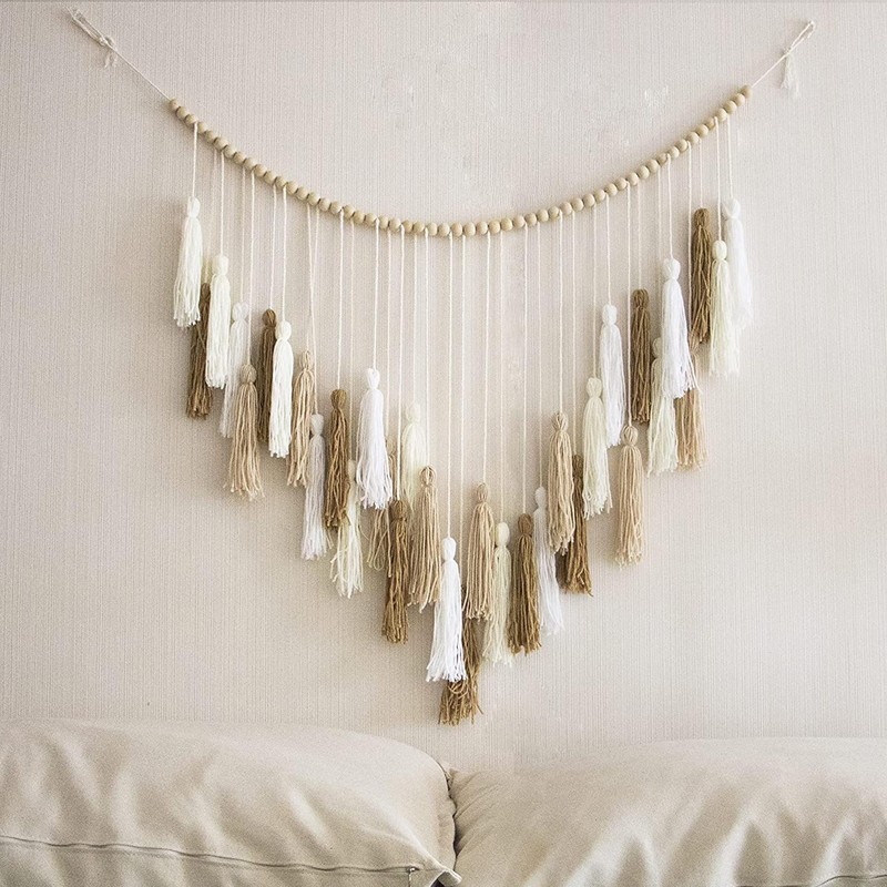- 🔔Gewebter Wandteppich: Hergestellt Aus Hochwertiger Baumwolle Und Runden Holzperlen, Makramee Wandbehanghome Decor,Umweltfreundlich, Geruchlos, Ungiftig Und SorgfäLtig Verarbeitet. Perfekt FüR Modernes Schlafzimmer Deko Room Decor Minimalistisches Interieur Oder Den Boho Deko.