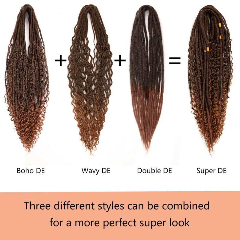 Boho Dreadlock Extensions Synthetic Double Ended with Bohemian Box Braids 24inch 20 Strands Thin 0.6CM Handmade Hippie Viking DE Dreadlock Extensions(Boho Box 20Strands,1B/30)