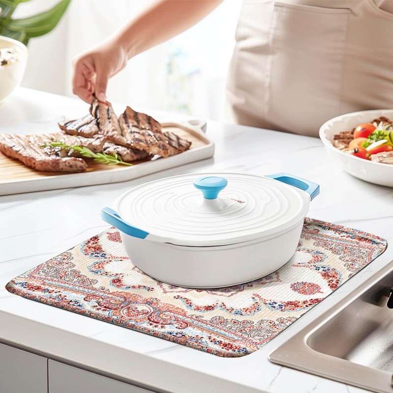 - Lovely Home Gift:Decorated with cute printed,drying mat for kitchen counter will surprise your family and friends,the kitchen drying mats for dishes make a perfect housewarming gift for new home or renovation, Christmas, Mother’s Day, birthday, Thanksgiving etc.