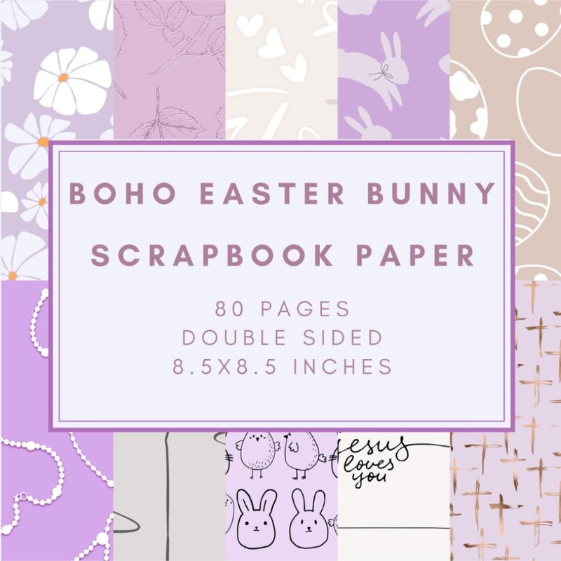 Boho Easter Scrapbook Paper 8.5 Inches, Double Sided Patterned Paper For Scrapbooking, Seasonal Crafts, Spring Decorative Paper For Journaling, Card ... Pages, Easter Bunny Themed - Lilac And Beige