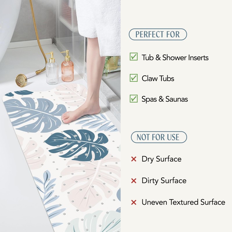 - Easy to Clean: This shower mat is easy to clean and maintain, Rinse in the shower or bathtub, or put in the washing machine and then air dry. Note: this bathtub mat is only suitable for smooth, non-textured surfaces.