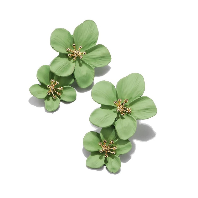 Boho Flower Stud Earrings for Women Girls,Elegant Layered Floral Petal Drop Earrings,Cute 3D Simulation Flower Statement Stud Earrings with Gold Flower Bud for Mom Sister Friends (Green)