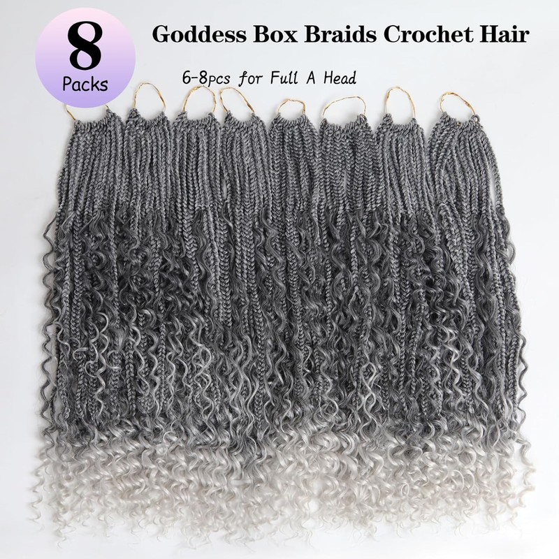 - 【Hair Material】Goddess Box Braid Crochet Hair Are 100% Handmade Crochet Braids.Natural Looking, Box Braid Crochet Hair Curly Ends Is Every Beautiful.Goddess Braids Extensions Hair Usually 6-8 Packs Can Full A Head.Pre-Looped And High Quality Fiber.