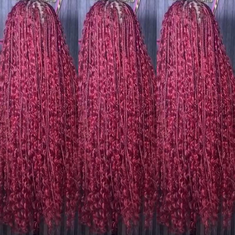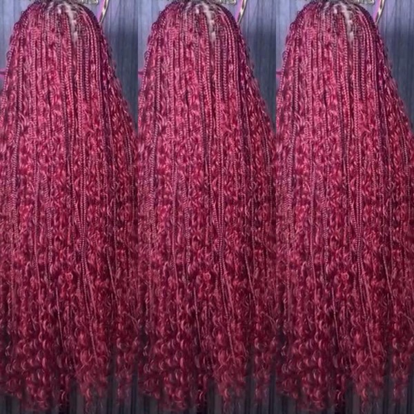 BOHO Knotless Braided wig - braids: Burgundy knotless boho braids, Lace type: Luxury lace