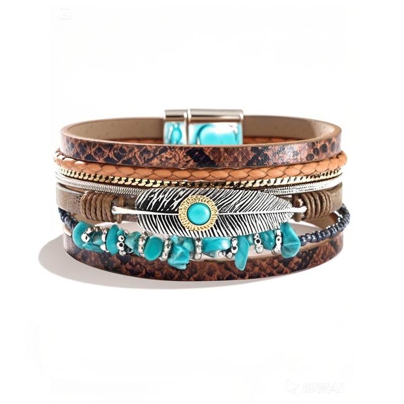 - BOHO JEWELRY FOR WOMEN: This Bohemian style leather bracelet is hand woven. Added ethnic elements, there are many different colors to choose from. There must be a color that suits you.