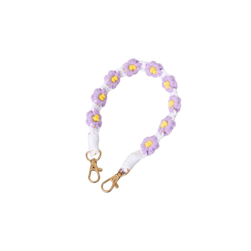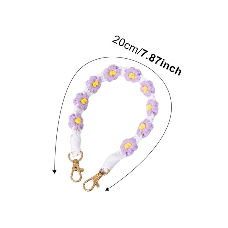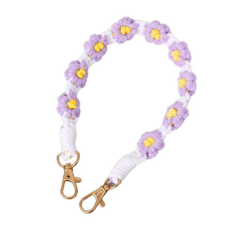 Boho Macrame Wrist Keyring, Handmade Wrist Key Ring, Band Lanyard, Short, Cute, Floral Weave, Exquisite Daisy Keychain for Women,, Purple (Colour), 20
