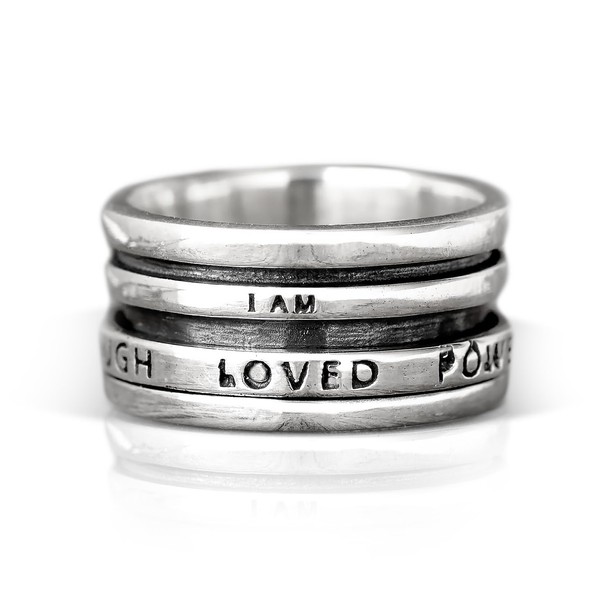 Boho-Magic 925 Sterling Silver Spinner Fidget Ring for Women I Am Powerful, Worthy, Enough, Loved (7)