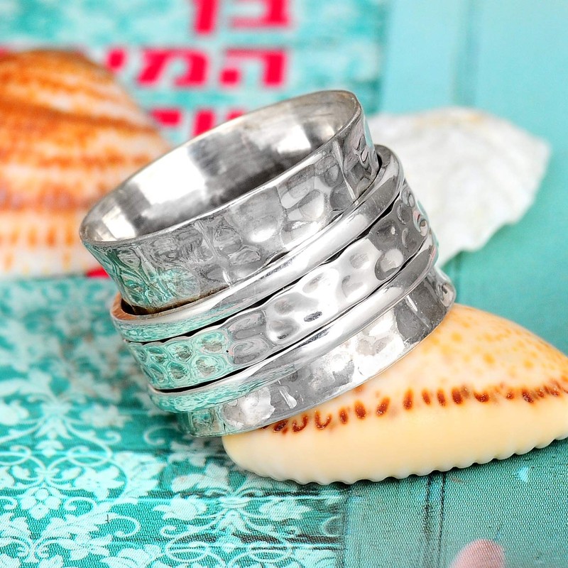 - DESIGNED FOR COMFORT - Smooth and comfortable, no sharp edges and most important - spin freely. Made of hammered 925 Sterling Silver (Stamped) with three spinning bands also made of silver.